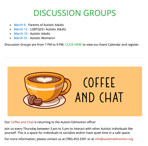 Autism Calgary is our sister association in Calgary and area. They preform many of the same functions as Autism Edmonton and are an important partner in both resources and education, as well as provincial work and collaborations.