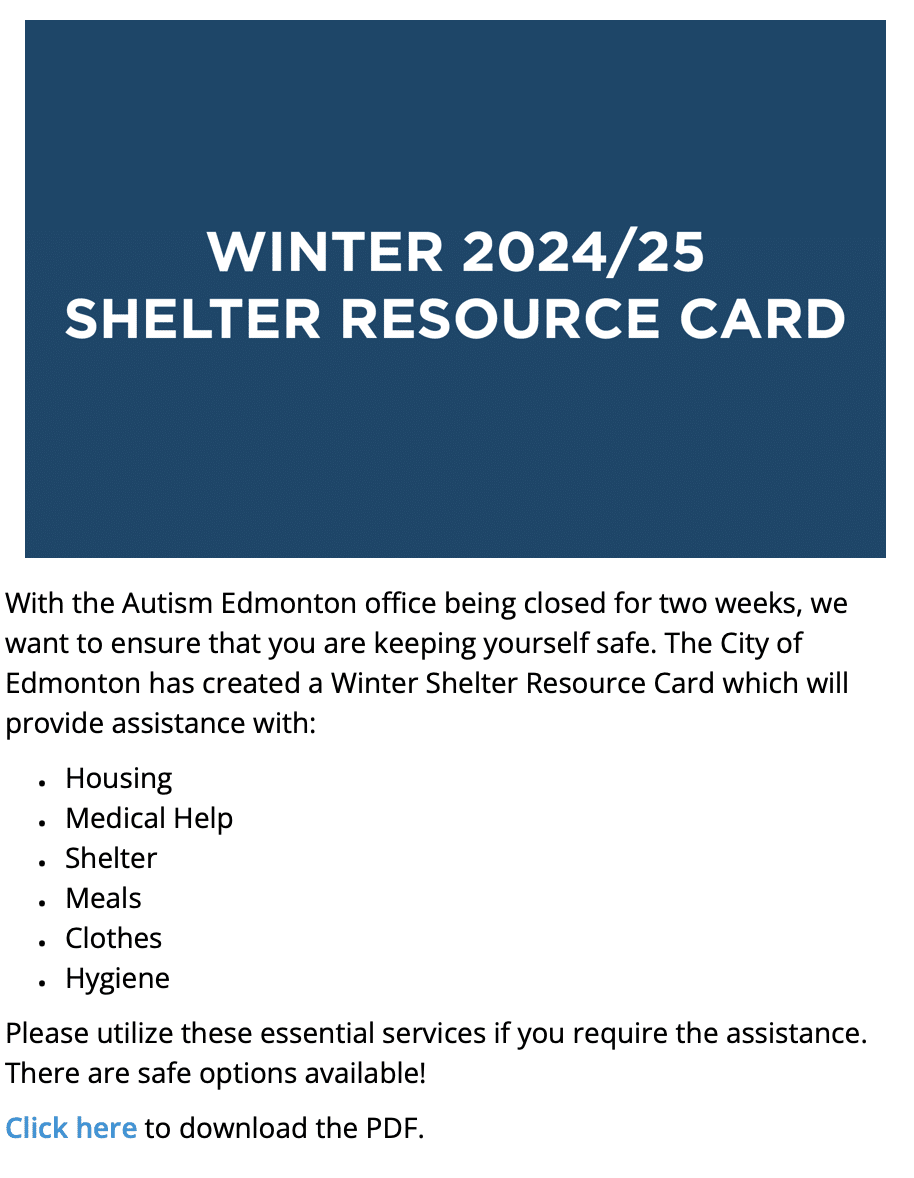 Autism Edmonton Newsletter: January 2025