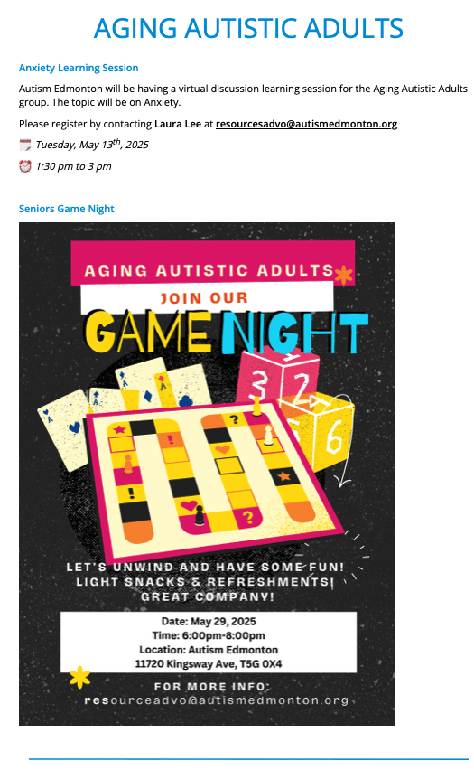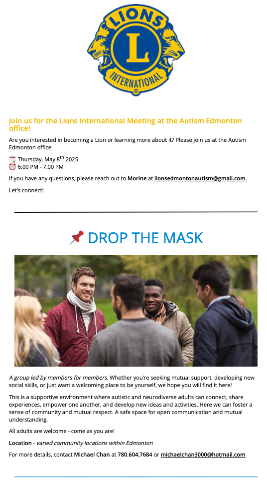 On Posted on May 1, 2025May 1, 2025 by Autism Edmonton to Newsletter