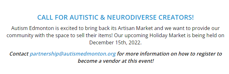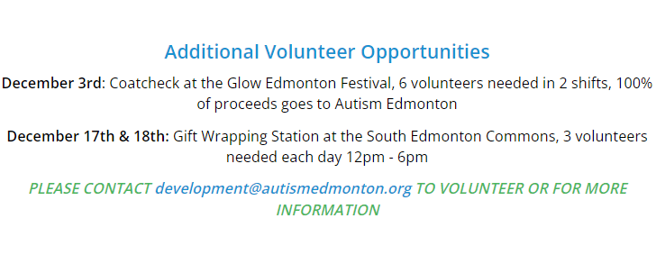 Promotion of the spirit of Christmas caring and sharing in the City of Edmonton. To provide a festive meal and coordination of Christmas giving to Edmontonian’s in need. Autism Edmonton has partnered up with the Christmas Bureau to help ensure those who want to celebrate the festive season are able to with out the financial barriers. Autism Edmonton helps support our membership in organizing hampers and assisting our members in filling out the application.