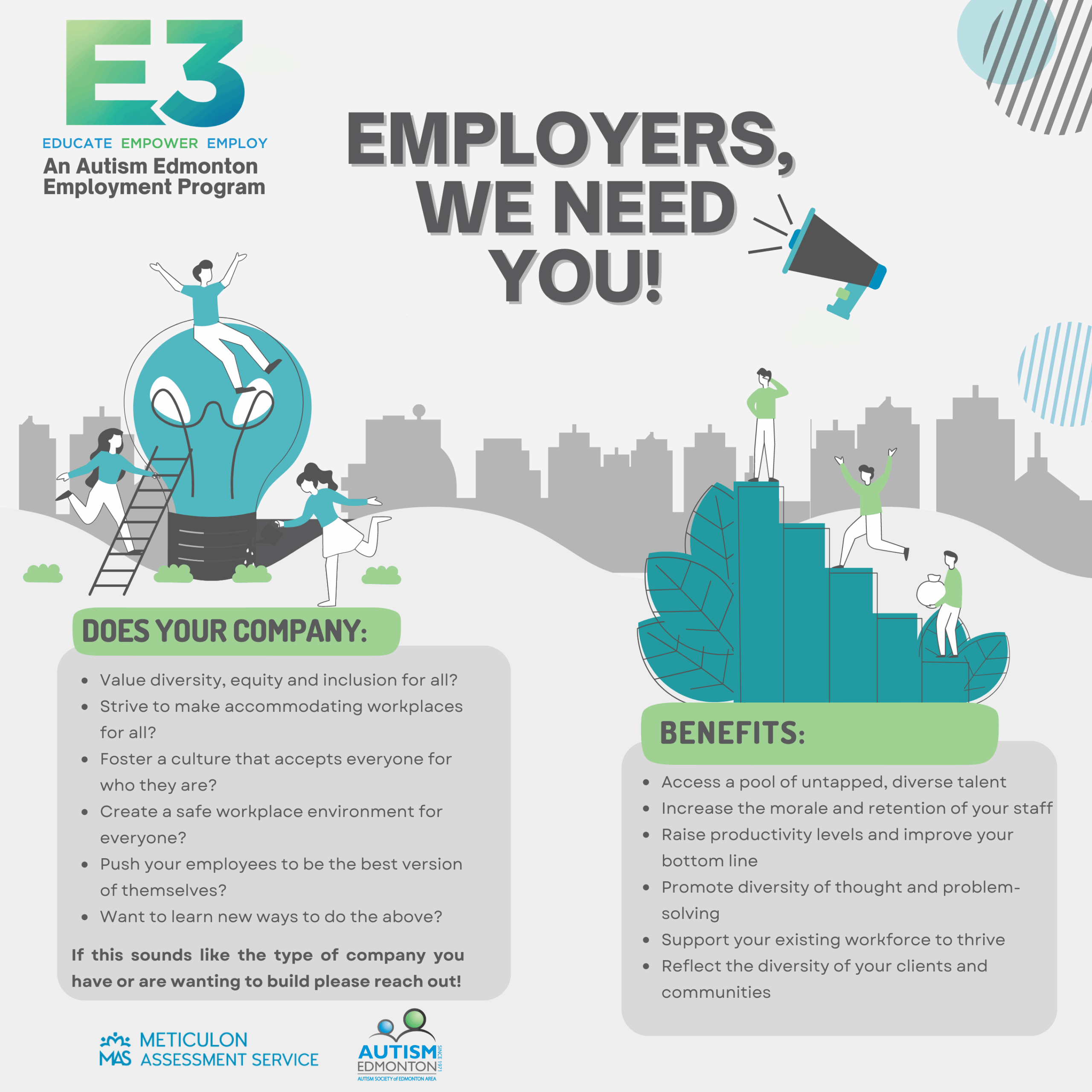 ACT works with both autistic youth and employer-partners. The Autism CanTech! program supports the development of inclusive and accessible workplaces and removes barriers for autistic professionals to get employed. Autism Edmonton supports students from this program through paid internships as well as supports program development through an advisory role.